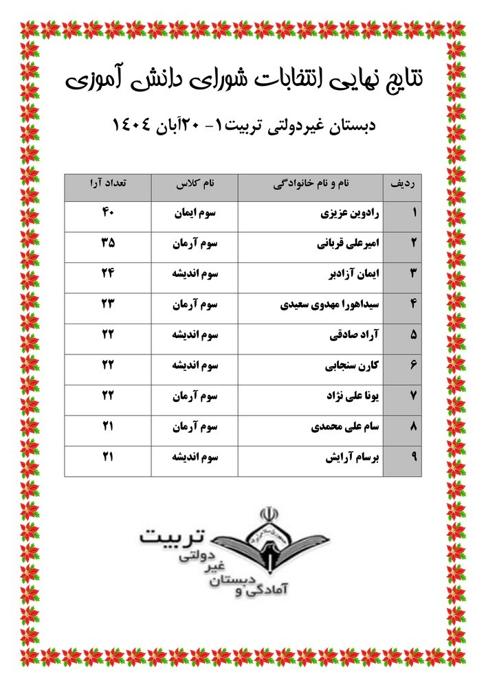 نتایج نهایی انتخابات شورای دانش آموزی 1405 - 1404